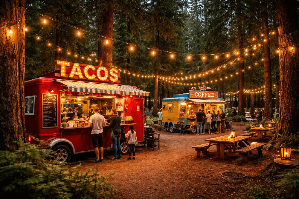 We are thrilled to announce the upcoming launch of our River’s Edge Food Cart Corner! Very soon, our campground will be home to a vibrant and diverse selection of food carts, bringing a variety of delicious cuisines right to your doorstep. Whether you’re in the mood for gourmet treats, savory snacks, or sweet indulgences, you’ll find something to satisfy every craving.